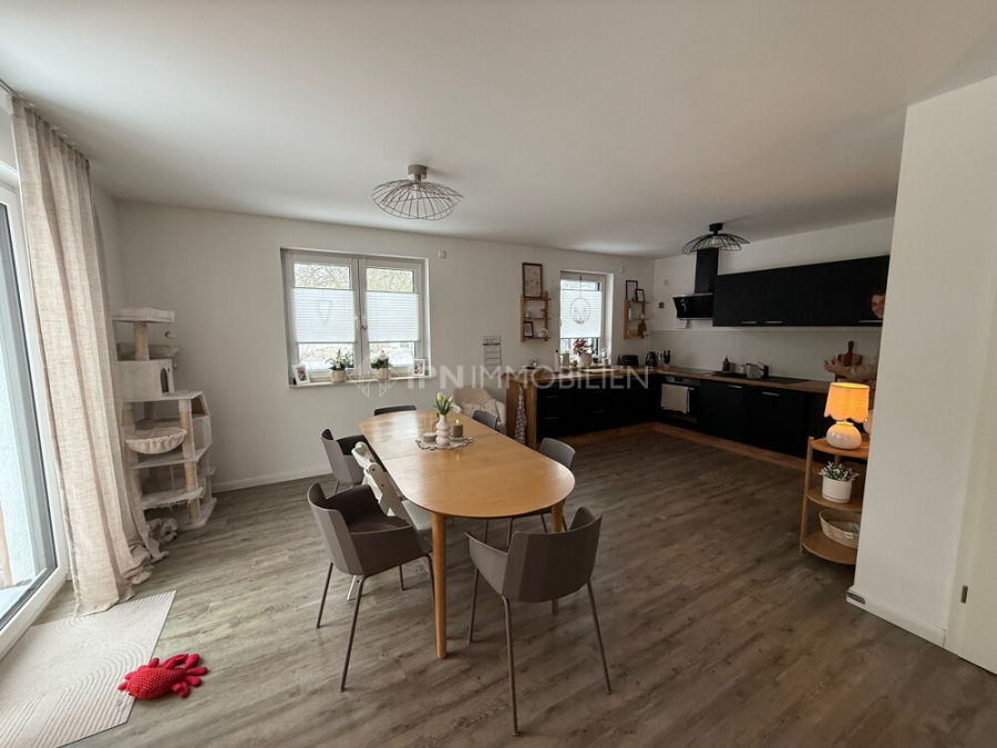 2022 sind in Prangendorf zwei Doppelhaushälften gebaut worden. Auf ca. 238 m² Grundstück entstand eine Doppelhaushälfte mit 4 Zimmern und zwei Bädern. Die Aufteilung im Erdgeschoss besteht aus einem großzügigem HWR, ein Wohnbereich mit offener Küche und einem Badezimmer mit Dusche. Im Obergeschoss befinden sich dann drei weitere Zimmer sowie das Tageslichtbad mit Wanne und Dusche. Das Grundstück ist eingezäunt und bietet ausreichend Platz für Erholung, Spiel & Spaß. Am Haus steht ein Parkplatz zur Verfügung.