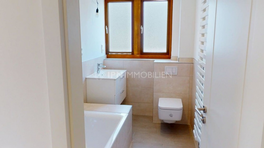 Hinweis: die hier dargestellten Bilder und der 3D-Rundgang stammen aus einer fast baugleichen Wohnung im selben Haus. Der Unterschied besteht im Grundriss (4 statt 3 Zimmer) und in der Badezimmerausstattung (Dusche statt Wanne).